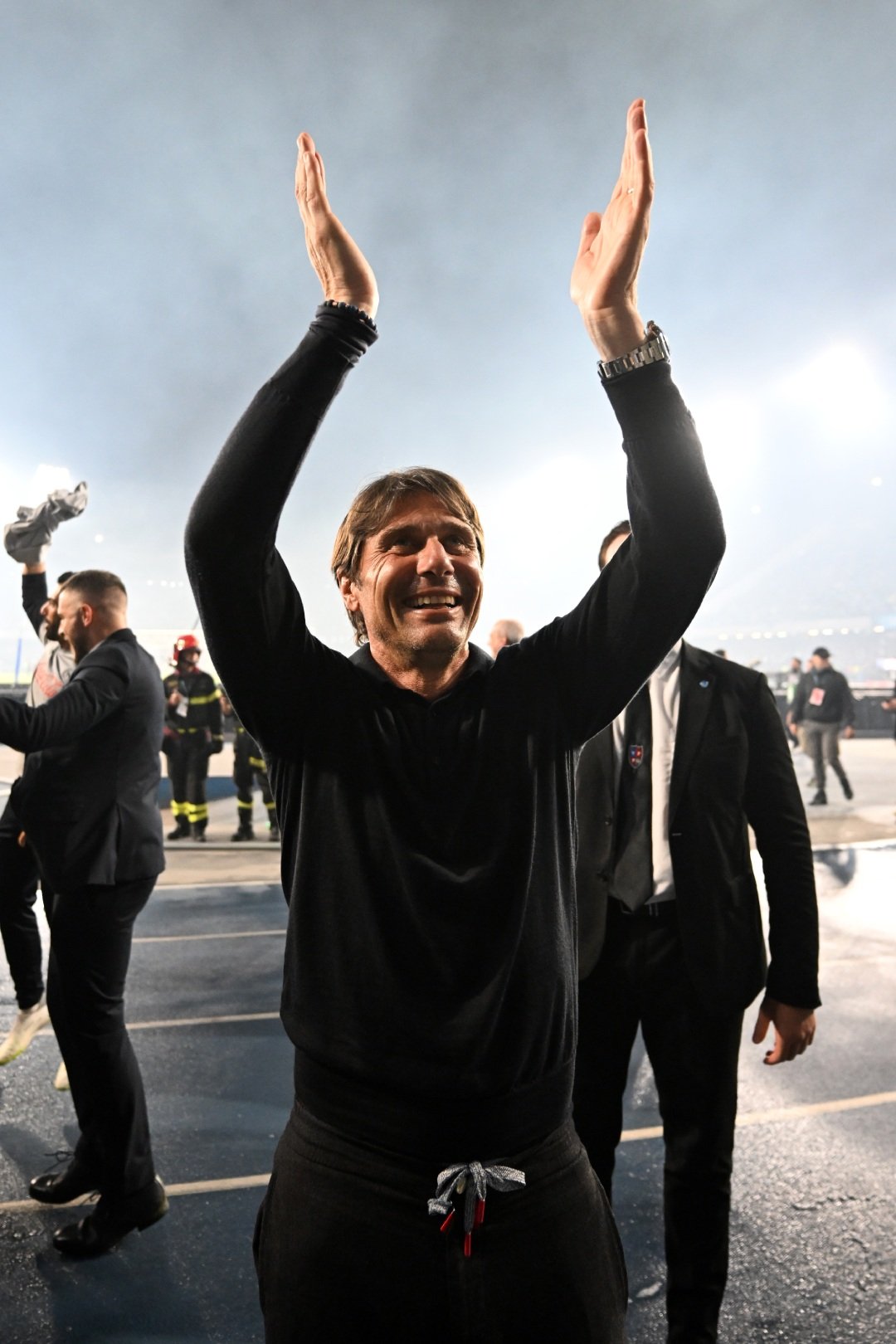 - Kulüp başkanı Aurelio De Laurentiis, sosyal medya paylaşımıyla Conte'yle yola devam edileceğinin ilk sinyalini verirken, Napoli kulübü de "Con Te Again" ifadesiyle haberi doğruladı.