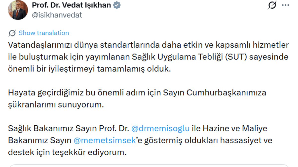 Çalışma ve Sosyal Güvenlik Bakanı Vedat Işıkhan, yayımlanan tebliğe ilişkin sosyal medya hesabından bir açıklama yaptı. Bakan Işıkhan, yapılan bu düzenlemenin önemini vurguladı.