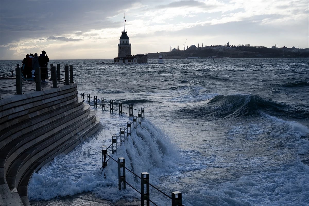 İstanbul’da etkili olan şiddetli yağış ve fırtına, kent genelinde hayatı olumsuz etkilerken Üsküdar Salacak Sahili’nde dalgalar kıyıya vurdu.