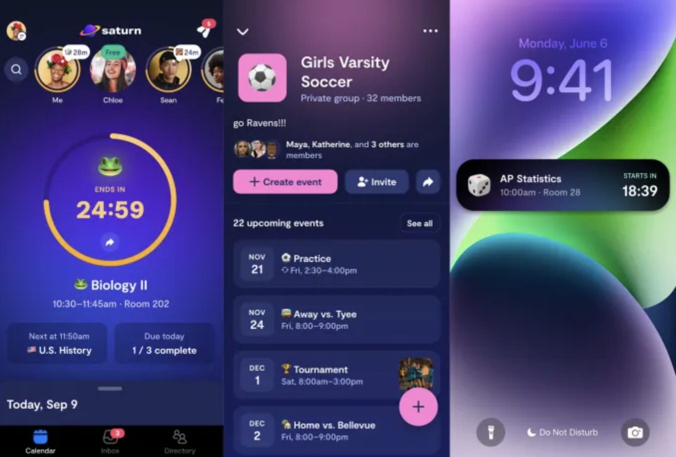 2018 yılında kurulan Saturn, takvimleme deneyimini sosyal bir yaklaşımla yeniden şekillendiriyor. Uygulamanın temel amacı, lise ve üniversite öğrencilerinin sınıf arkadaşlarıyla kolayca bağlantı kurmasını sağlamak. Öğrenciler, ayrı ayrı ders programı fotoğrafları paylaşmaya gerek kalmadan, arkadaşlarının hangi derslerde olduğunu uygulama üzerinden görebiliyorlar.