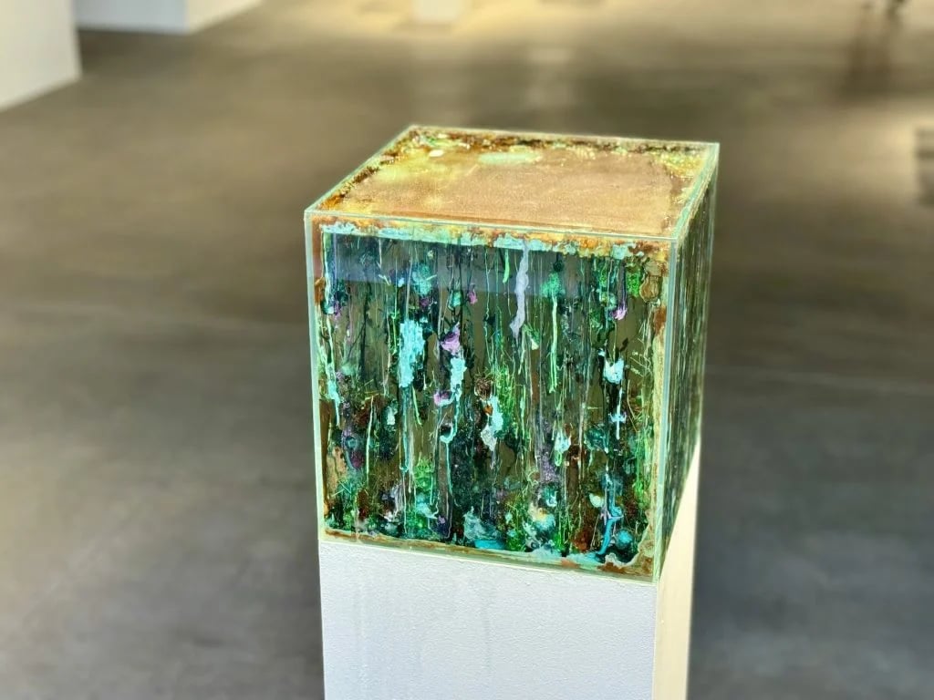 Sergide, termit höyüklerinden dökülen çinko heykeller, 3D modellerle entegre edilmiş bonsai ağaçları ve sosyal medya trendlerine yanıt olarak renk lekeleriyle çiçek açan sıvı kristal tablolar yer alıyor.