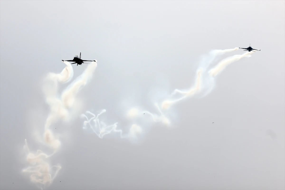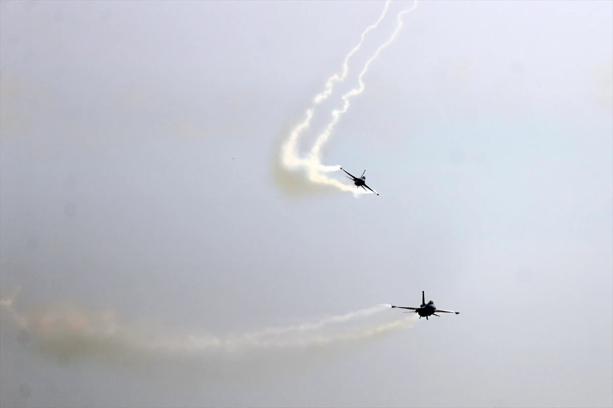 Türk Hava Kuvvetlerinin harbe hazır iki F-16 savaş jetinden oluşan akrobasi timi SOLOTÜRK'ün kuruluşunun 15. yılına özel yapılan gösteri izleyenleri bir kez daha hayran bıraktı.