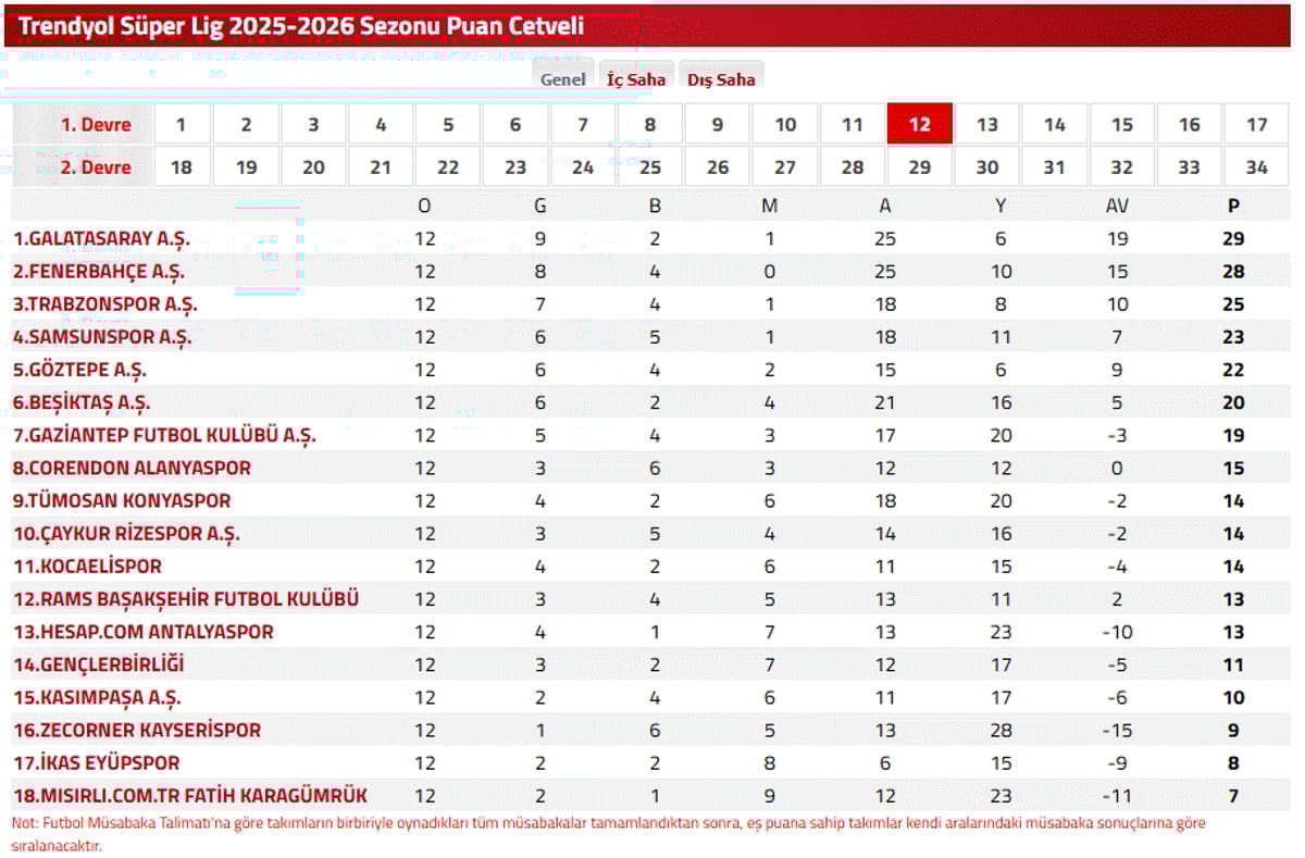 Süper Lig puan durumu | TFF ile Süper Lig puan durumu sıralaması nasıl?