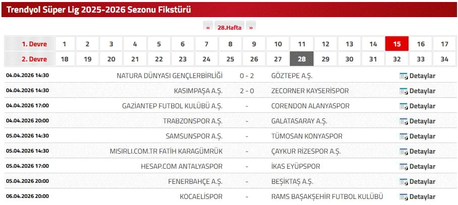 28. HAFTA Süper Lig puan durumu tablosu detayları şöyle;