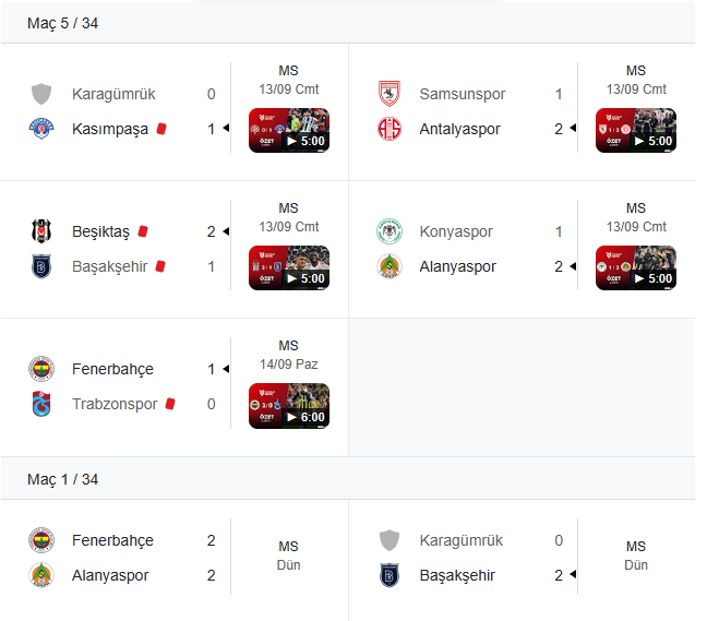 18 Eylül Süper Lig puan durumu sıralama tablosu ve en son oynanan maçların skorları şöyle;