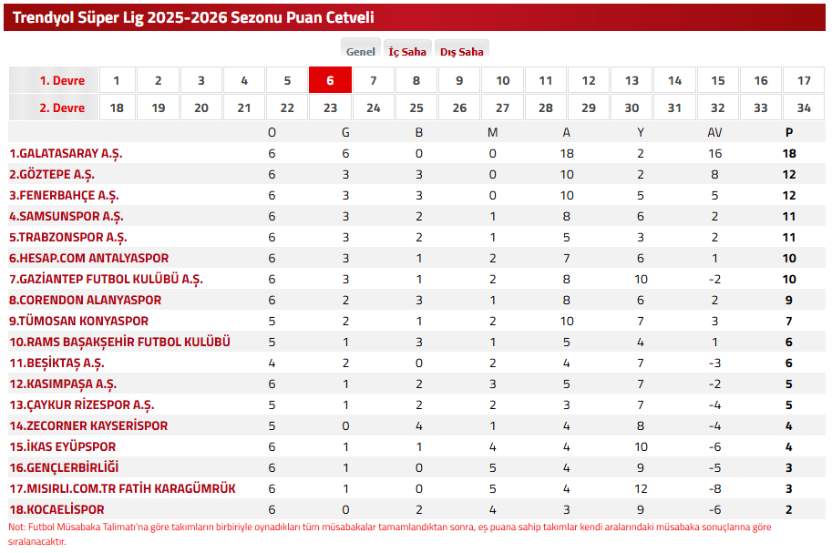 Trendyol Süper Lig 6. haftası sona ererken güncel Süper Lig puan durumu sıralama tablosu merak konusu olarak 23 Eylül Süper Lig puan durumu sıralaması nasıl? sorusuna yanıt aranıyor.