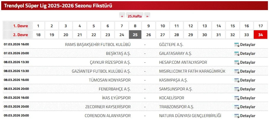 SÜPER LİG 25. HAFTA MAÇ PROGRAMI