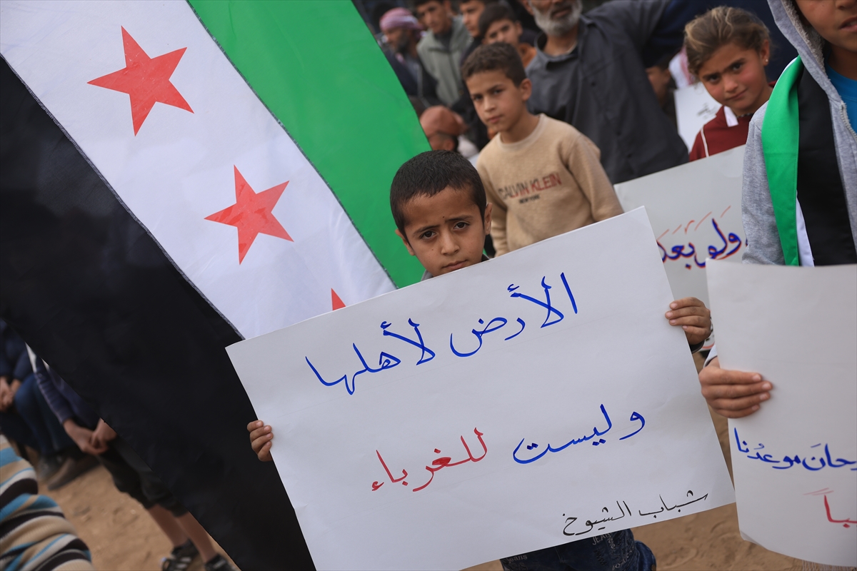 Protestocular, Suriye Cumhurbaşkanı Ahmed Şara'ya çağrı yaparak ülkenin doğusunun terör örgütünden temizlenmesini istedi.