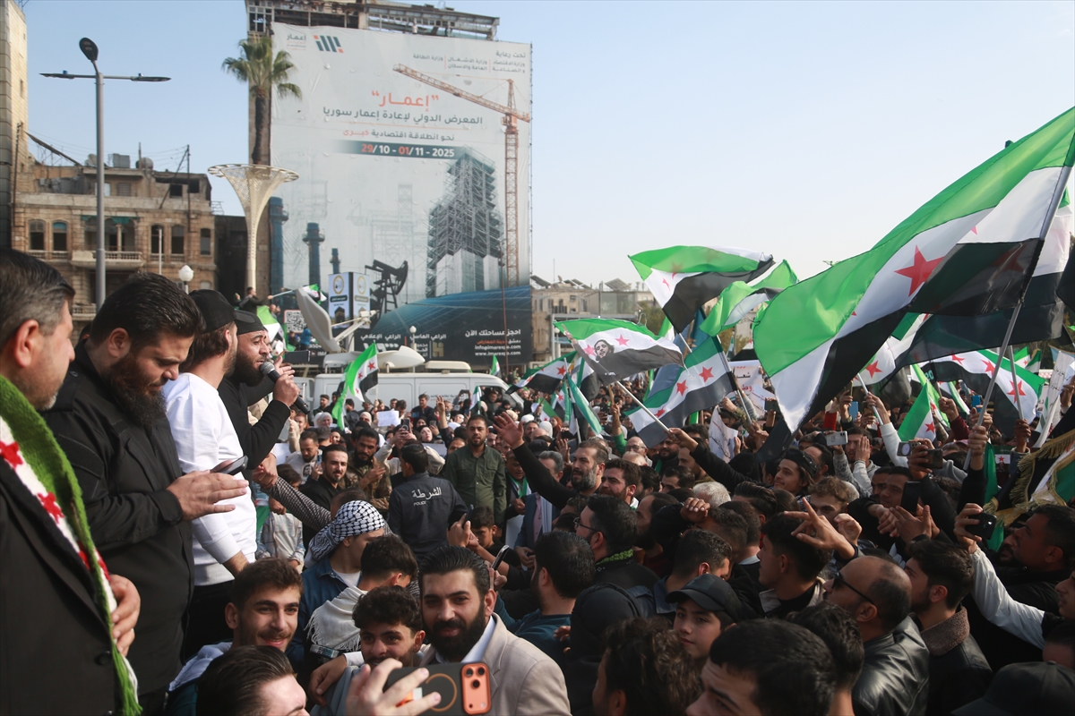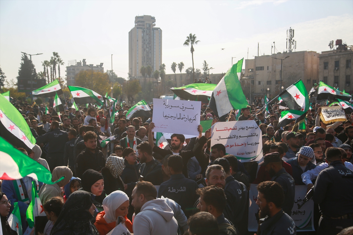 Meydanları dolduran kalabalık, Suriye'nin toprak bütünlüğünün korunmasının önemine dikkati çekerek, ülkenin birlik ve beraberliğinin vurgulandığı mesajlar verdi.