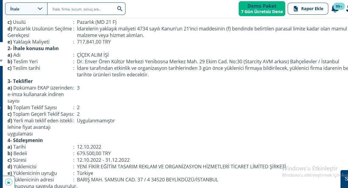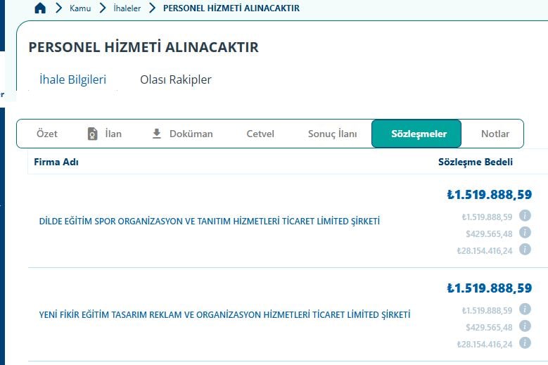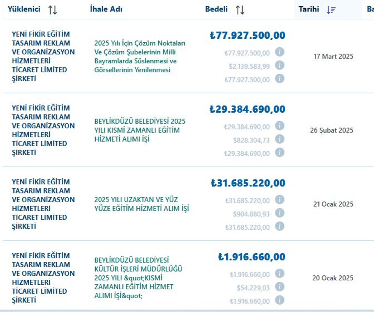 - Yeni Fikir Eğitim Tasarım ve Reklam şirketi, 2015’ten bu yana yaklaşık 400 milyon TL’lik kamu ihalesi aldı.