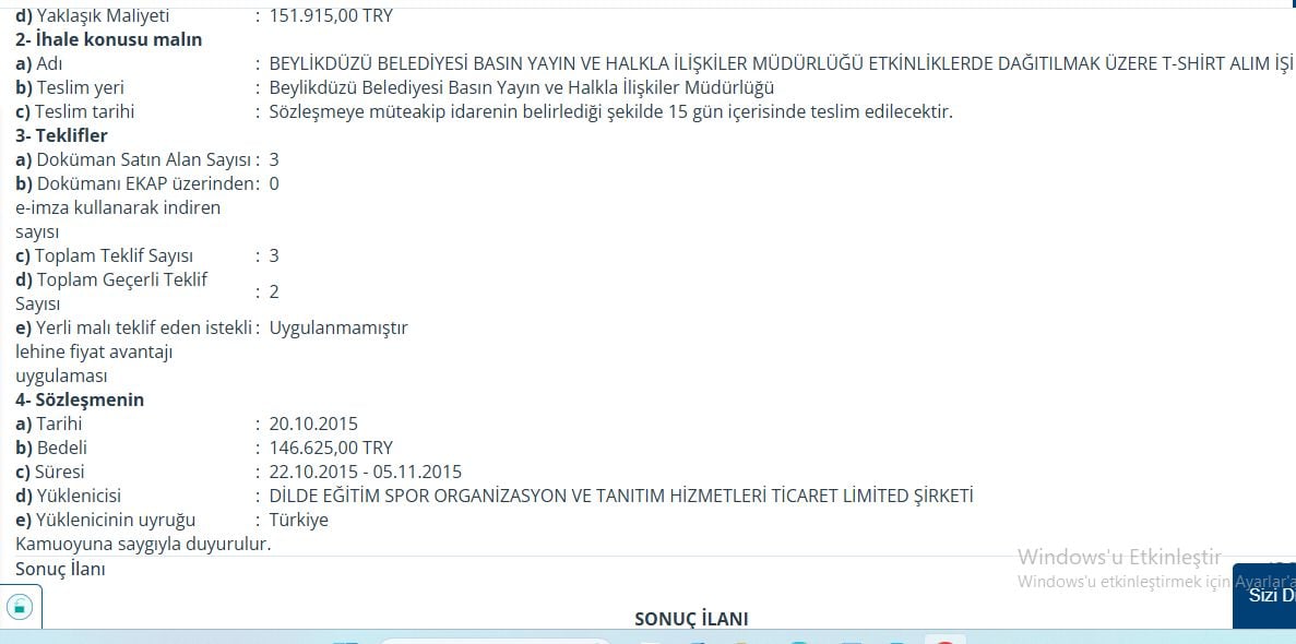 Şirketin kamu ile ilk teması 2015 yılında Beylikdüzü Belediyesi üzerinden kuruldu. O dönem belediyede görev yapan Taner Çetin’in düzenlediği "Beylikdüzü Belediyesi Basın Yayın ve Halkla İlişkiler Müdürlüğü Etkinliklerde Dağıtılmak Üzere T-Shirt Alım İşi" ihalesini, 292 bin TL bedelle Yeni Fikir Eğitim Tasarım ve Reklam aldı.