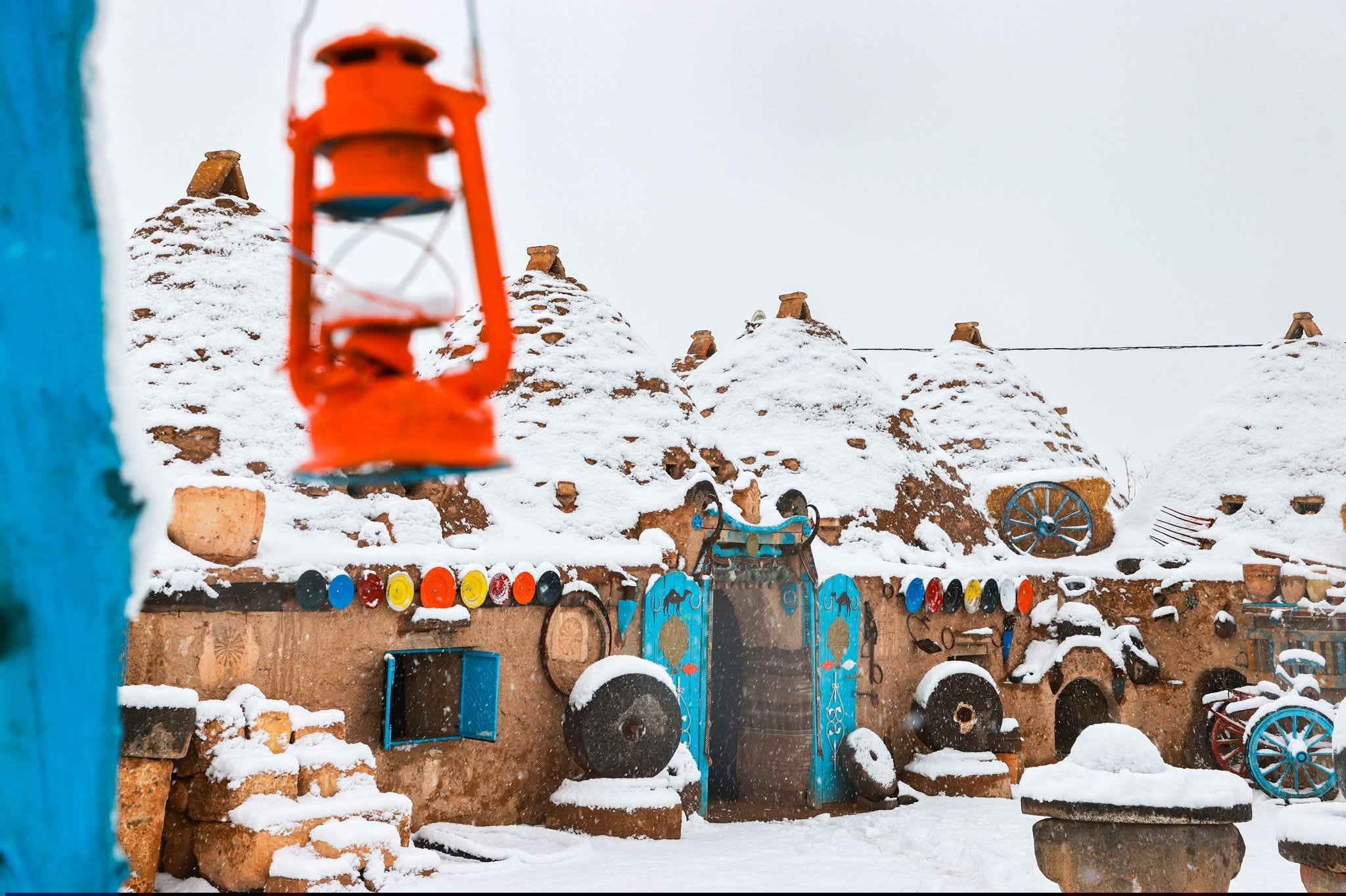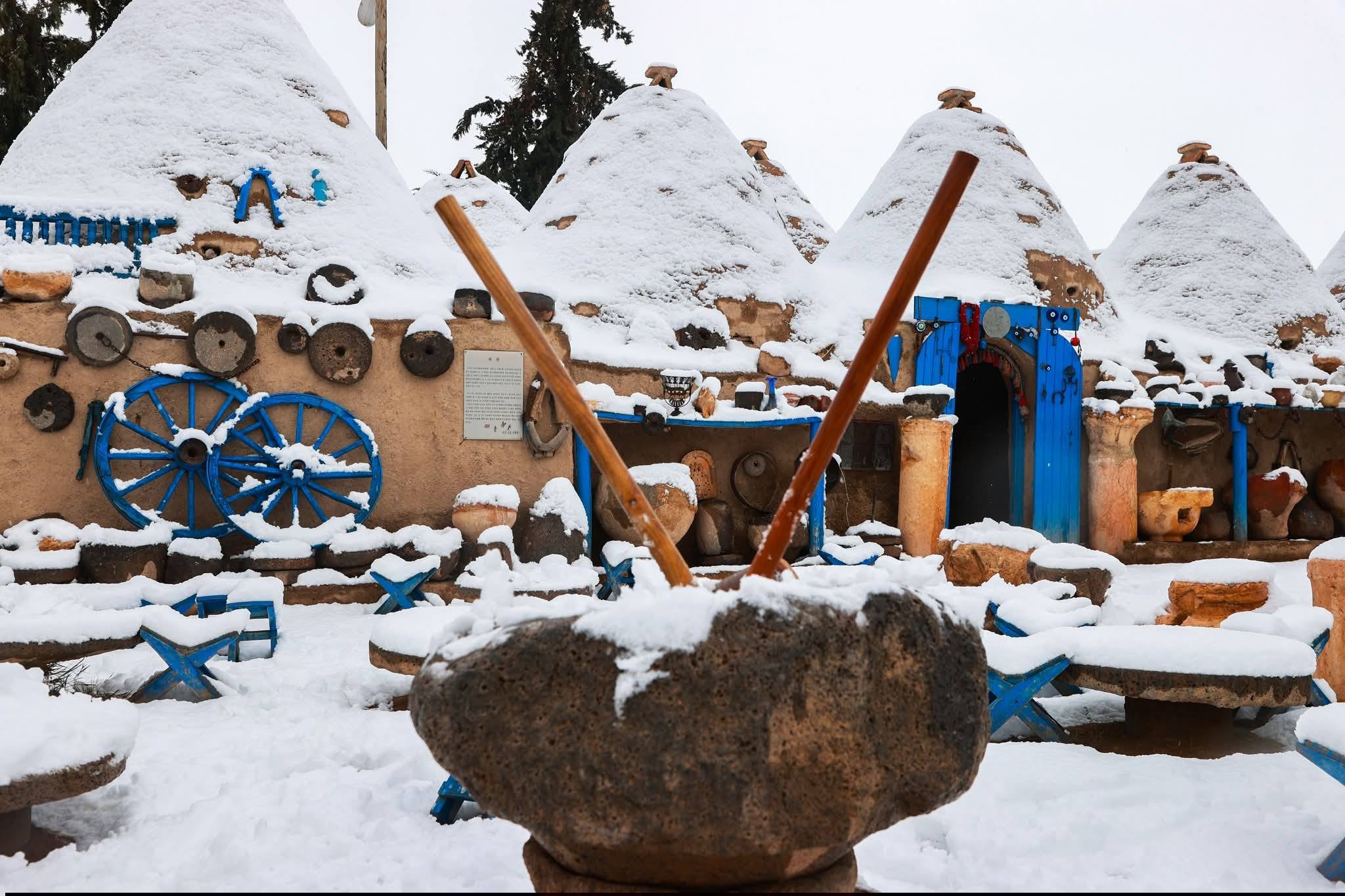 UNESCO Dünya Mirası Geçici Listesi'nde yer alan Şanlıurfa'nın Harran ilçesindeki konik kubbeli kümbet evler karla kaplandı.