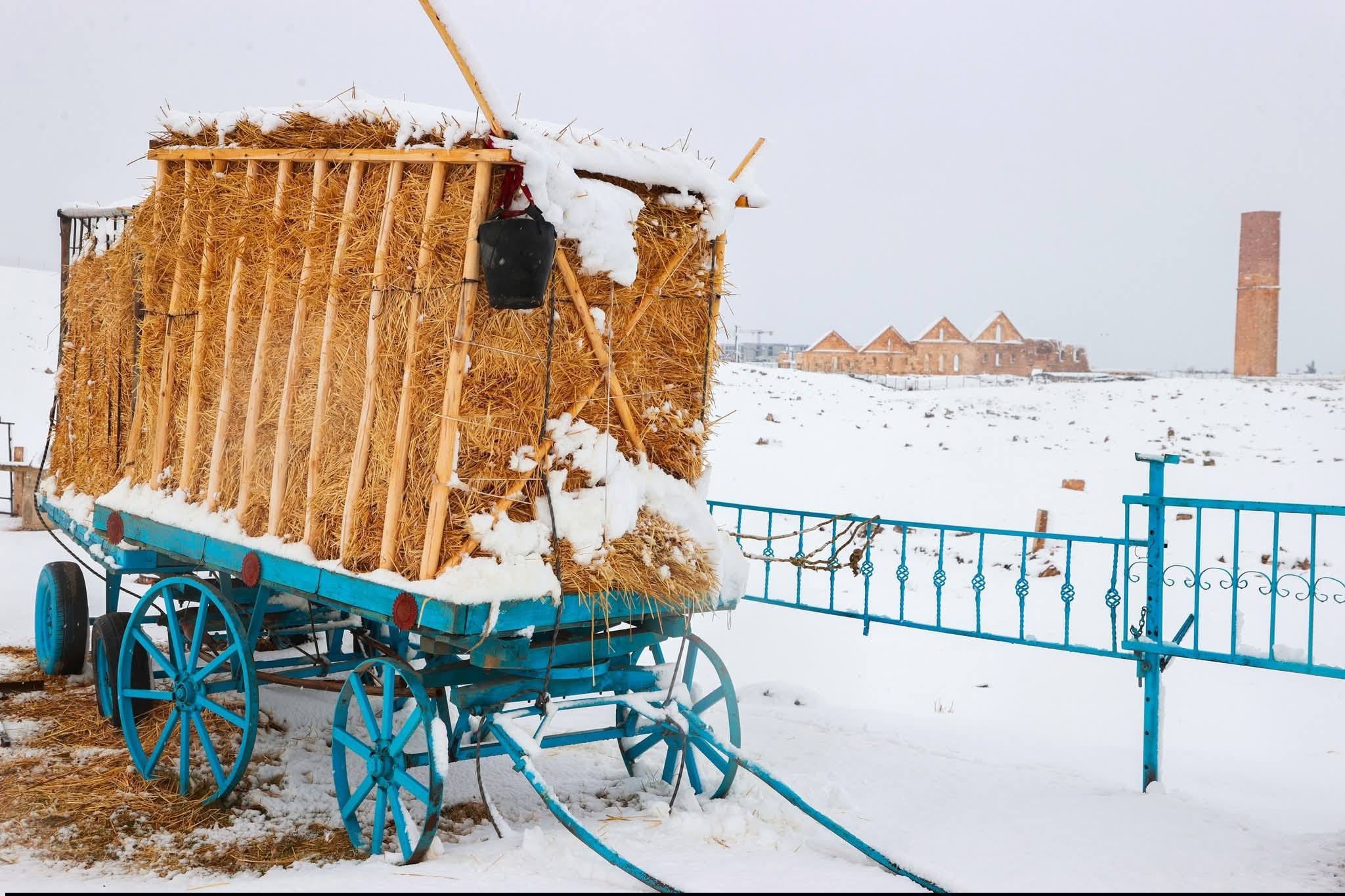 UNESCO Dünya Mirası Geçici Listesi’ndeki Şanlıurfa’nın Harran ilçesinde kar yağışıyla, ilk İslam Üniversitesi’nin kalıntıları ve konik kubbeli kümbet evler beyaza büründü.