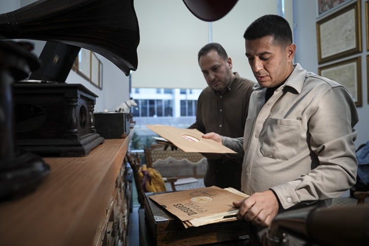 Taş plak koleksiyoneri Yunus Savaş ve Hakan Balcı, unutulmaya yüz tutan taş plak kültürünü yaşatmak için sosyal sorumluluk projeleri yürütüyor.
