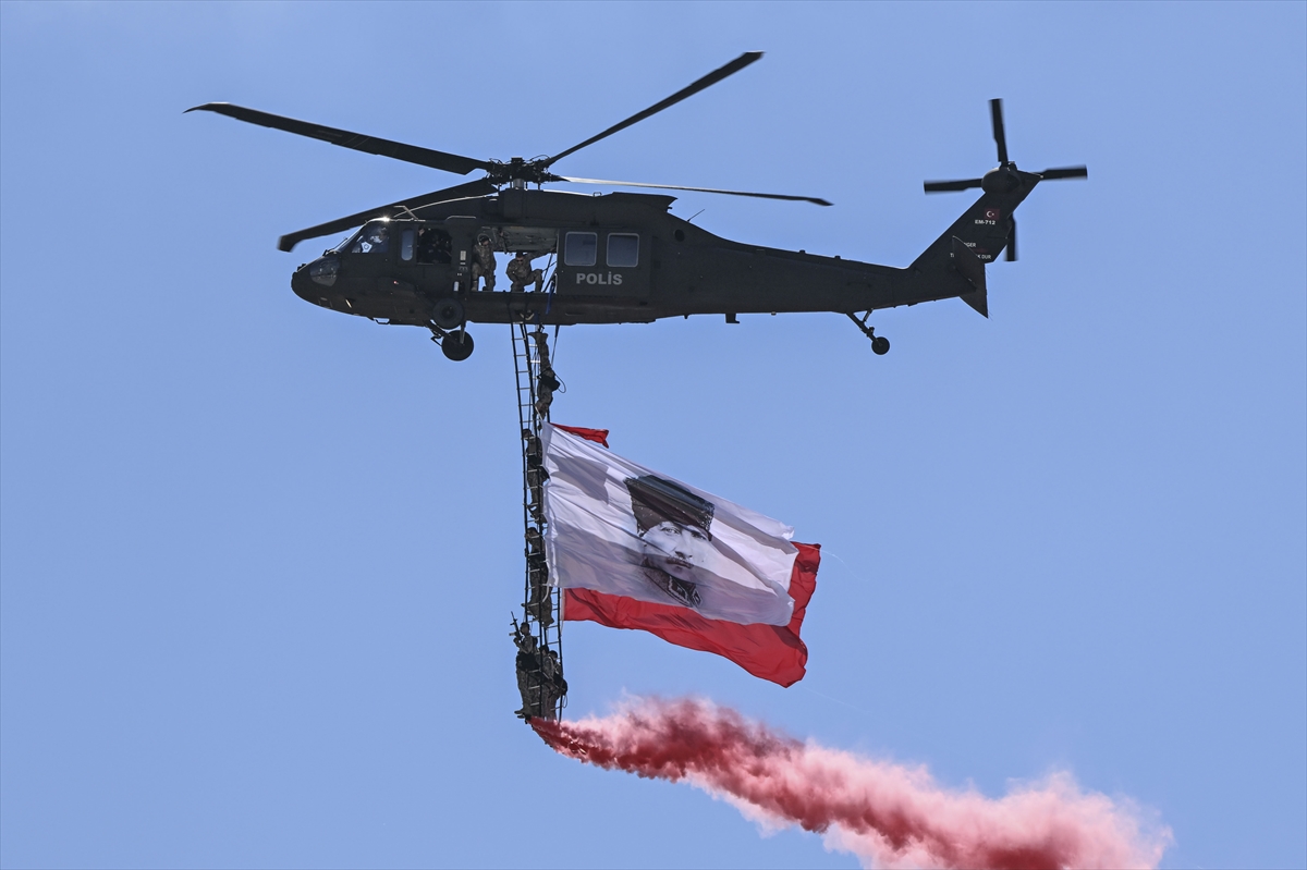 TEKNOFEST İstanbul, Atatürk Havalimanı’nda üçüncü gün etkinlikleri ile devam ediyor. Festivalde, Polis Özel Harekat ekipleri gösteri uçuşu gerçekleştirdi.