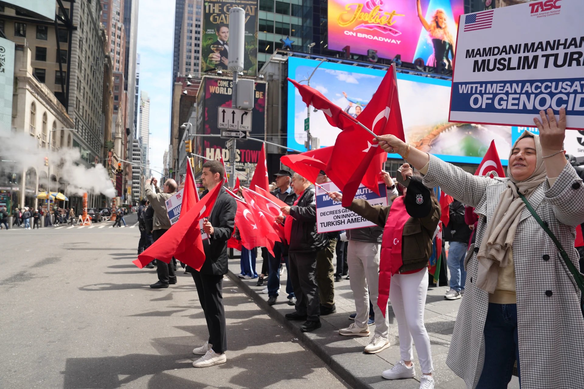 New York Belediye Başkanı Zohran Mamdani'nin Türkiye ve Azerbaycan'ı hedef alan açıklamalarına Times Meydanı'nda Türk-Amerikan toplumu, söz konusu iddialara sert tepki göstererek birlik mesajı verdi.
