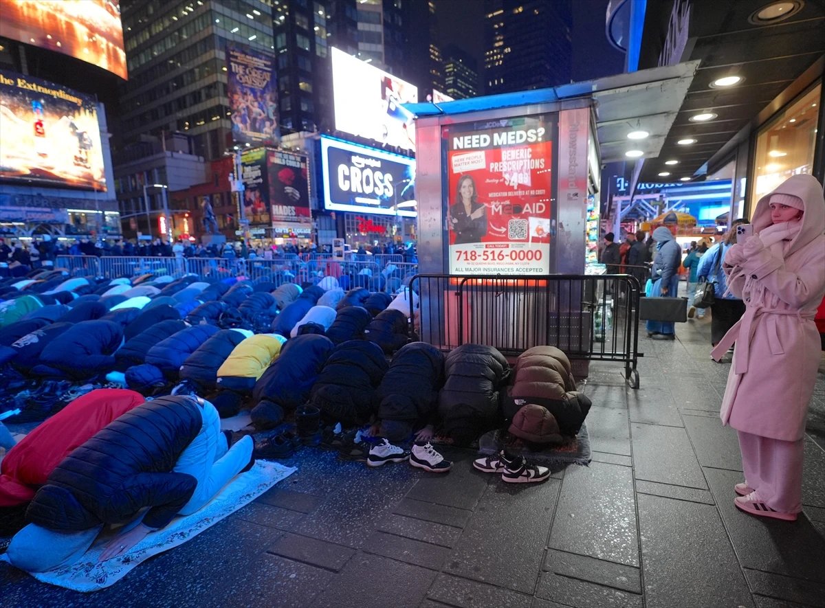 Times Meydanı’nda gerçekleştirilen toplu ibadet, çevrede bulunanların cep telefonlarıyla kaydedildi. Etkinlik, sosyal medyada da geniş yankı buldu.