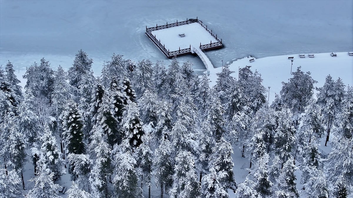 Ladik Gölü beyaz gelinliği giydi: Kar altında görsel şölen