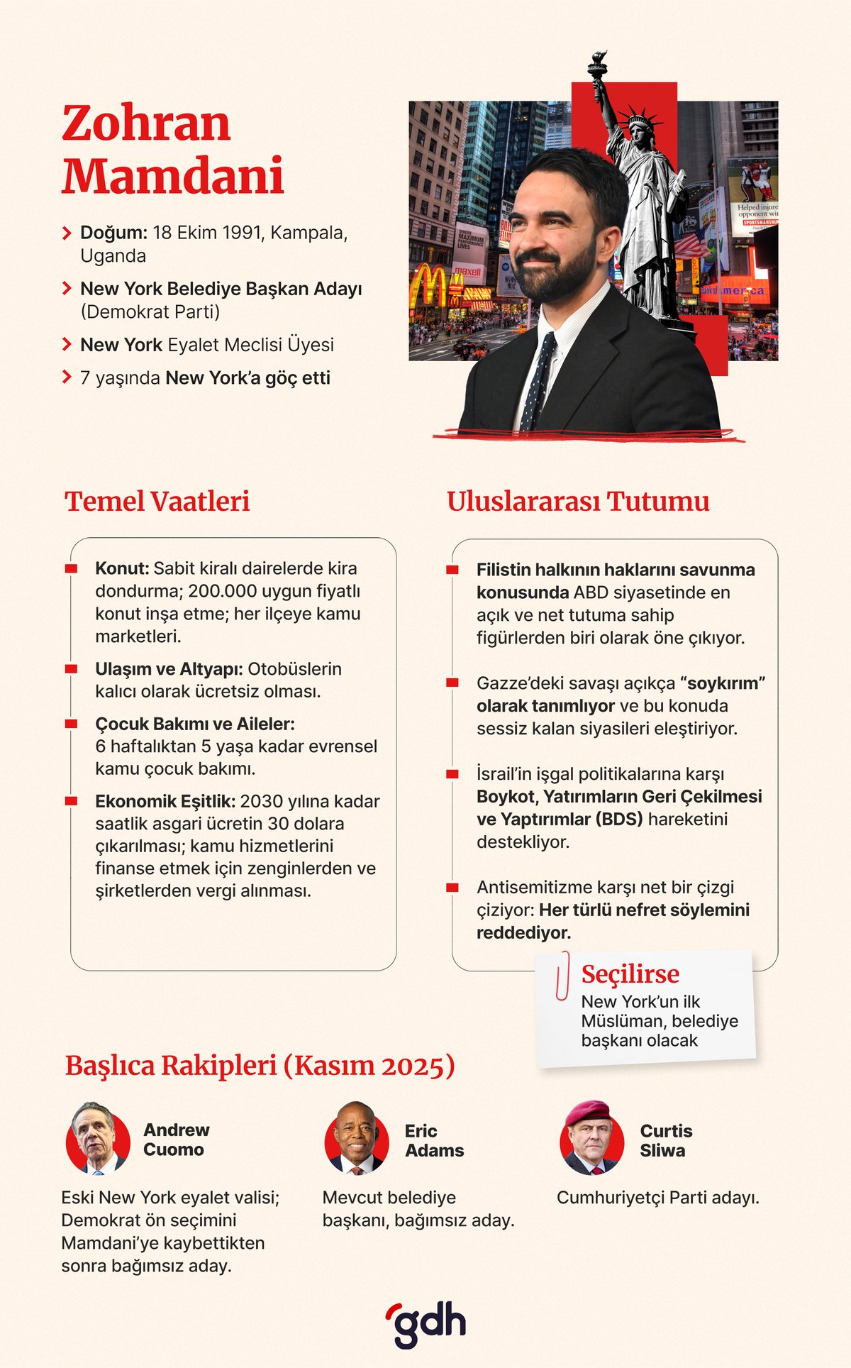 New York’un ABD’nin en pahalı şehirlerinden biri olduğuna dikkat çeken Mamdani, belediye başkanı olması halinde gelir adaletsizliği ve konut kriziyle mücadeleyi öncelik haline getireceğini söyledi. “Halkımızın ekonomik olarak nefes alabileceği ve kendini güvende hissedebileceği bir şehir yaratmak zorundayız” diyerek kampanya vizyonunu özetledi.