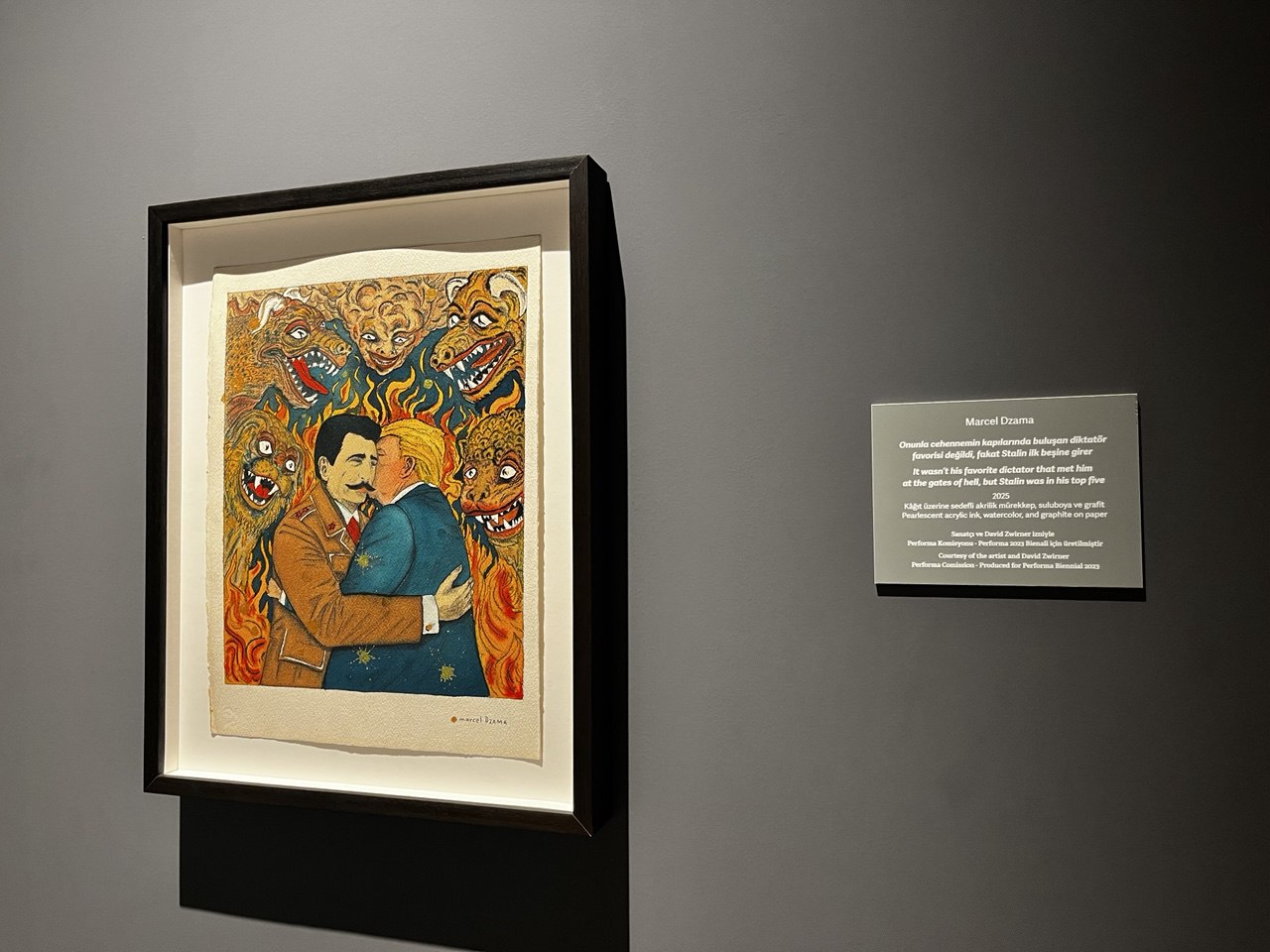 - Sanatçı, diktatörlük figürlerinden Donald Trump, Stalin ve Putin’i farklı perspektiflerle ele alıyor.