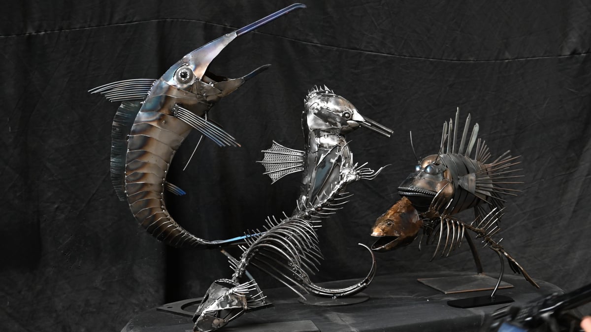 Eskişehir’de, aile mesleği balıkçılıktan ilham alan genç sanatçı Mücahit Diyar Arız, hurdalardan topladığı metal parçaları sanatsal eserlere dönüştürüyor.