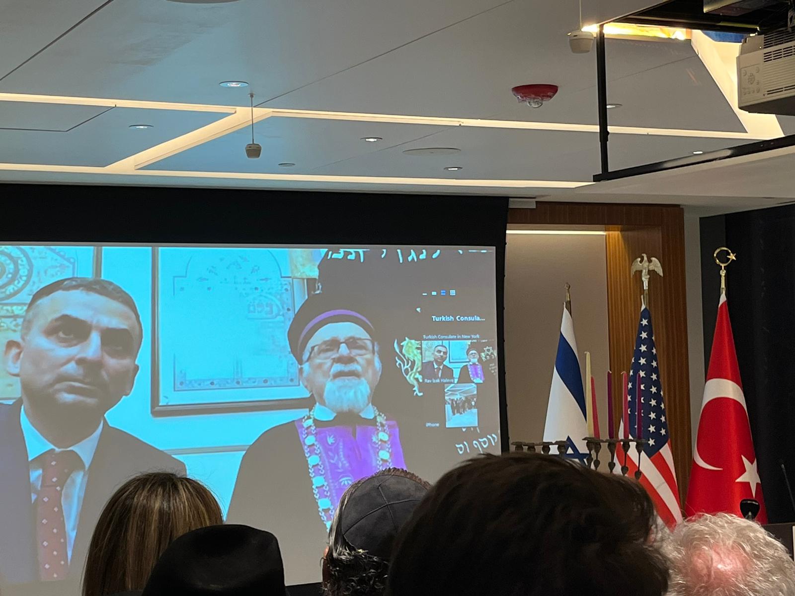 Türkiye Musevileri Hahambaşı İsak Haleva da ABD'deki Yahudi cemaatinin Hanuka Bayramı'nı kutlamak için İstanbul'dan video konferansla törene katıldı.