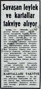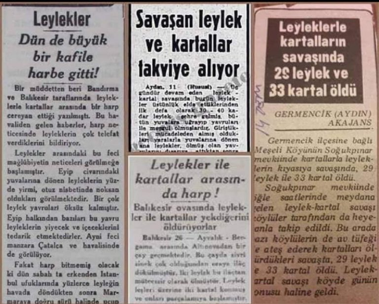 "Bu sabah şehrimizin üstünden 50 kadar kartal Ege istikametine doğru uçup gitmiştir. Bunların Aydın’daki savaşa gittikleri anlaşılmaktadır. Uzun süren çarpışmalar sonucu 12 ölü, 50 yaralı bedeline zafer leyleklerin olmuş. Kartalların 20 ölü verdiği kaydedilmiş." şeklinde vermişti.