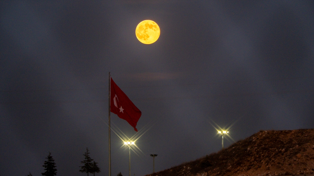 Türkiye'nin farklı şehirlerinde gökyüzünü süsleyen dolunay, izleyenlere görsel şölen yaşattı.