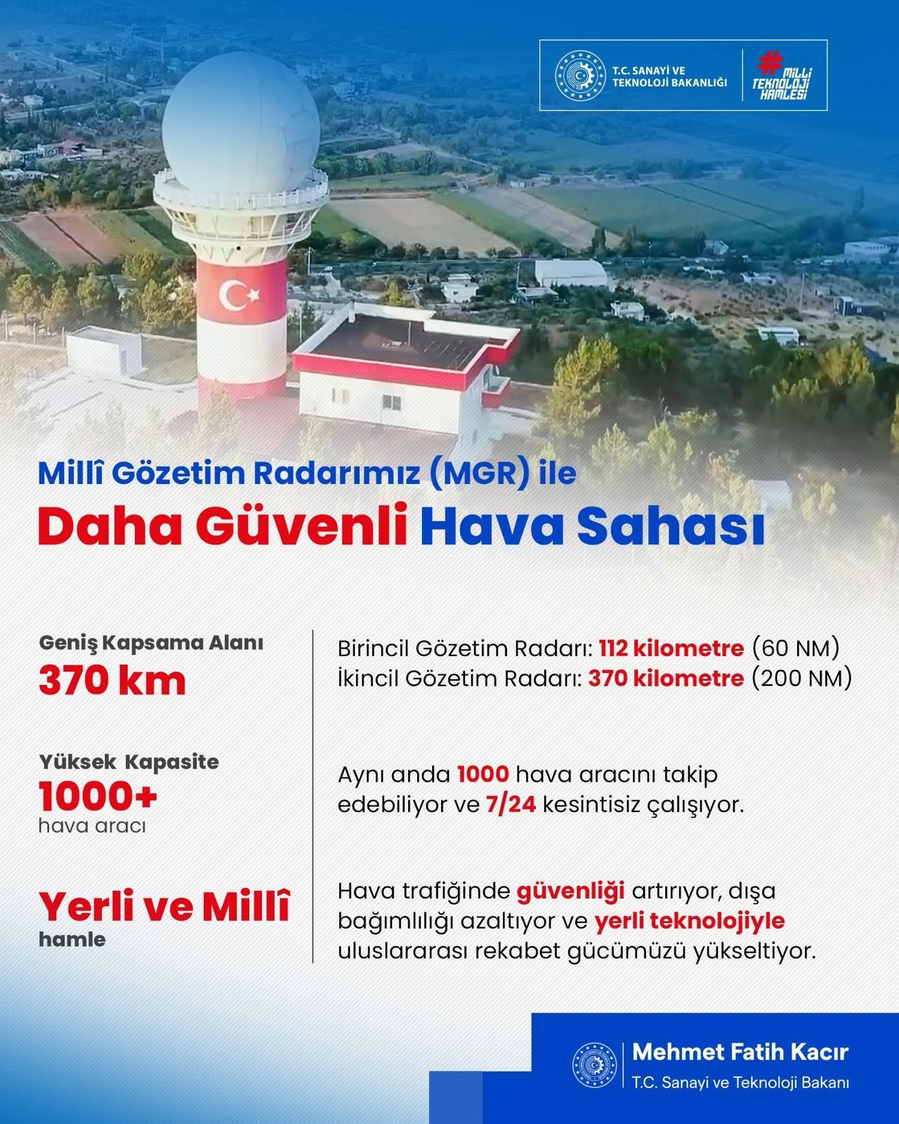 Millî Gözetim Radarı (MGR), Türk hava sahasını daha güvenli ve verimli hale getirerek sivil havacılıkta yeni bir eşik atlatacak. Hava trafik kontrol sistemleriyle tam uyum içinde çalışarak uçuş güvenliğini artırması, yoğun hava trafiğinde hızlı ve doğru karar alınmasına olanak tanıması bekleniyor.