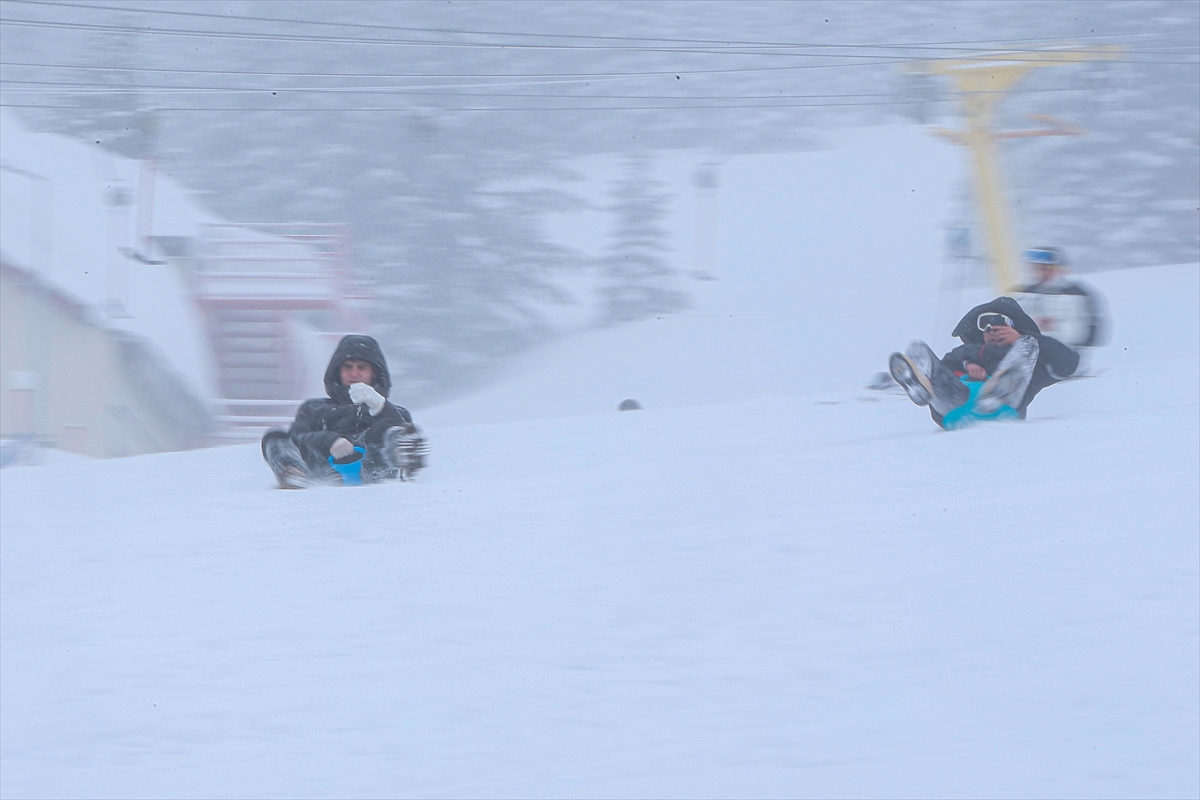 Kar yağışını fırsata çeviren yerli ve yabancı turistler ise kayak, snowboard ve kartopu eşliğinde kışın tadını çıkarıyor.