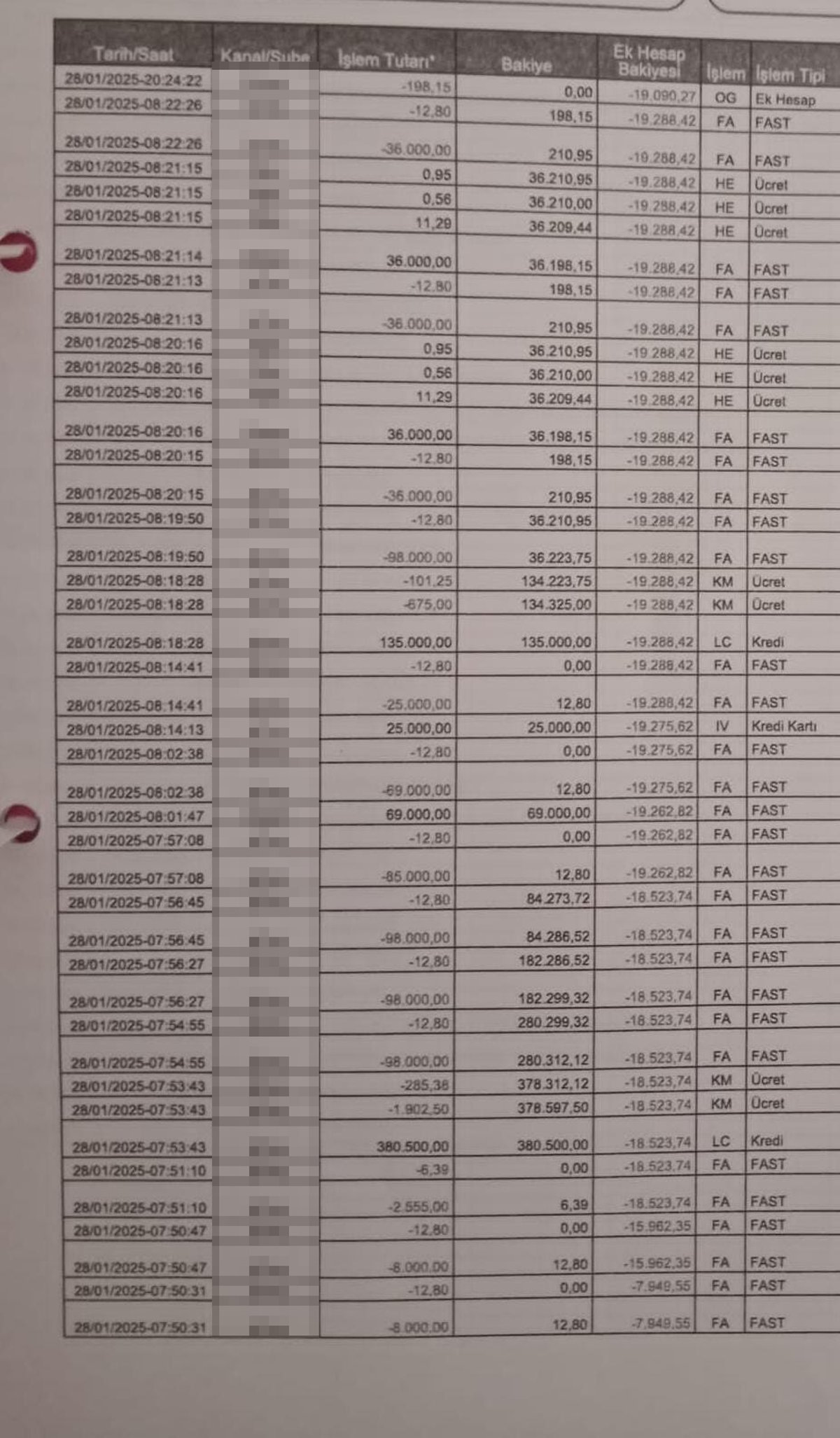 Selda K., 28 Ocak'ta şarjı dolu olan şifresiz kullandığı telefonunu başucuna koyarak uyudu. Sabah saat 10.00 sıralarında uyandığında telefonunun kapalı olduğunu, açmak istediğinde de şifre konulduğunu fark etti. Evinin yakınında bulunan telefoncuda telefonunu açtıran Selda K., mobil bankacılık bilgileri kullanılarak 3 farklı bankadaki hesaplarında bulunan para ile bir bankadan adına çekilen 2 kredi tutarının Muhammet B. ve Engin K.'ye parça parça gönderildiğini gördü. Toplam 628 bin 500 TL dolandırıldığını iddia eden Selda K., hesaplarına bloke koydurdu. Selda K., işlemin kendisine ait olmadığını ve paranın transfer edildiği hesap sahiplerini tanımadığını ileri sürerek, Ankara Cumhuriyet Başsavcılığı'na suç duyurusunda bulundu.