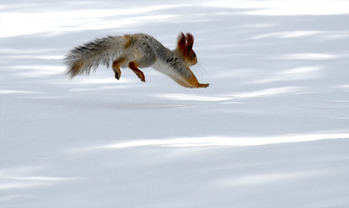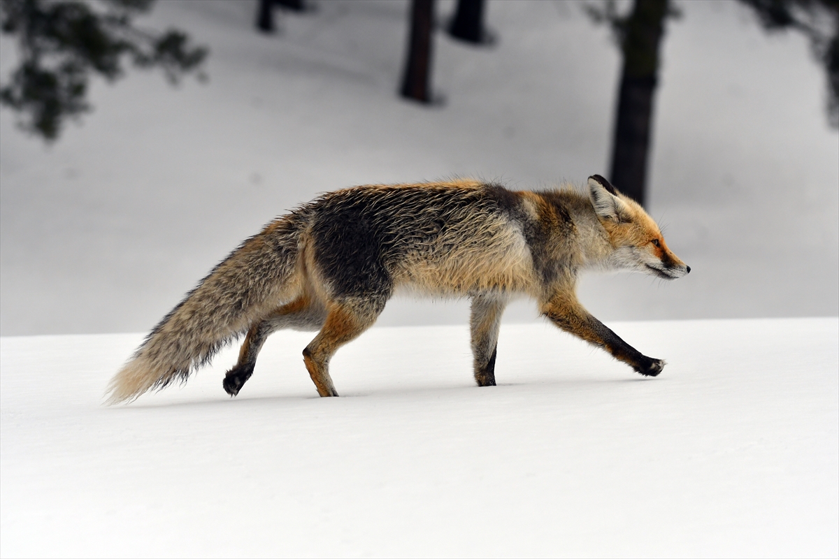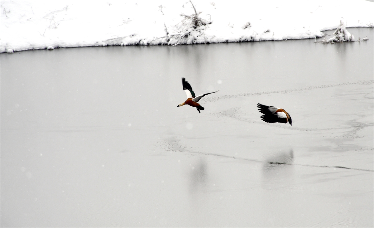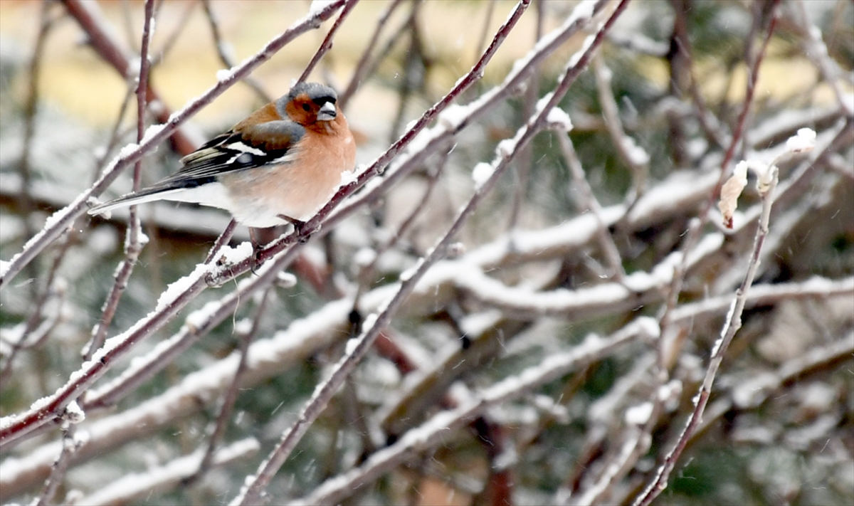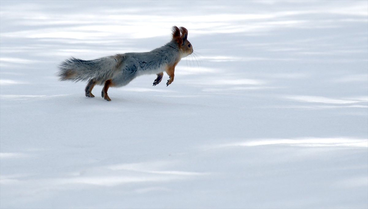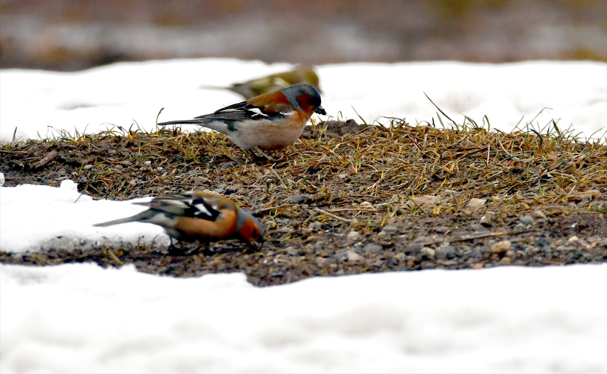Kars Sarıkamış'ta nisan karı sonrası yiyecek arayan yaban hayvanları ve göçmen kuşlar, beyaza bürünen sarıçam ormanlarında görüntülendi.