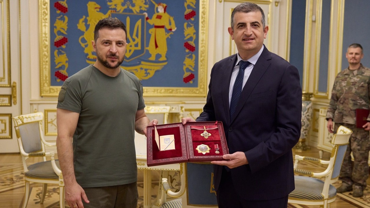 Yetmedi, Ukrayna Devlet Başkanı Zelenskiy, Selçuk ve Haluk Bayraktar’a 1. derece Devlet Liyakat Nişanı takdim etti.