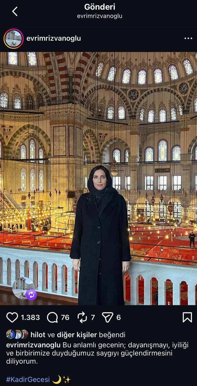 Efendim, sizler de bilirsiniz; CHP yöneticileri ibadetlerini pek paylaşmaz. Hatta bunun, İsmet İnönü döneminden kalma bir teamül olduğunu söyleyenler de var. Ancak bu teamülü bir kadın Genel Başkan Yardımcısı değiştirdi. Belki de ilk kez bir CHP’li kadın yönetici camiden fotoğraf paylaştı. Kim mi? DEVA Partisi’nden istifa ederek CHP’ye katılan ve Genel Başkan Yardımcılığı’na atanan Evrim Rızvanoğlu. Rızvanoğlu, sosyal medya hesabından Kadir Gecesi’nde cami içinden bir fotoğraf paylaştı. Sizce CHP değişiyor mu?